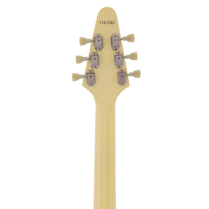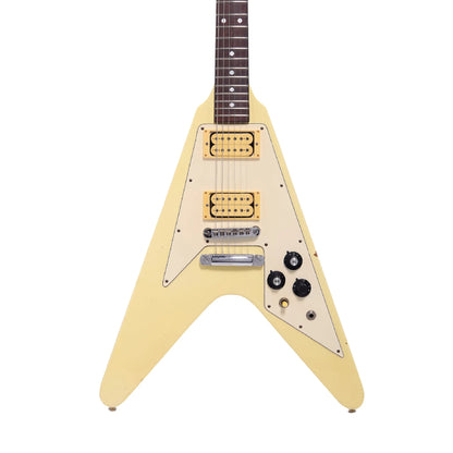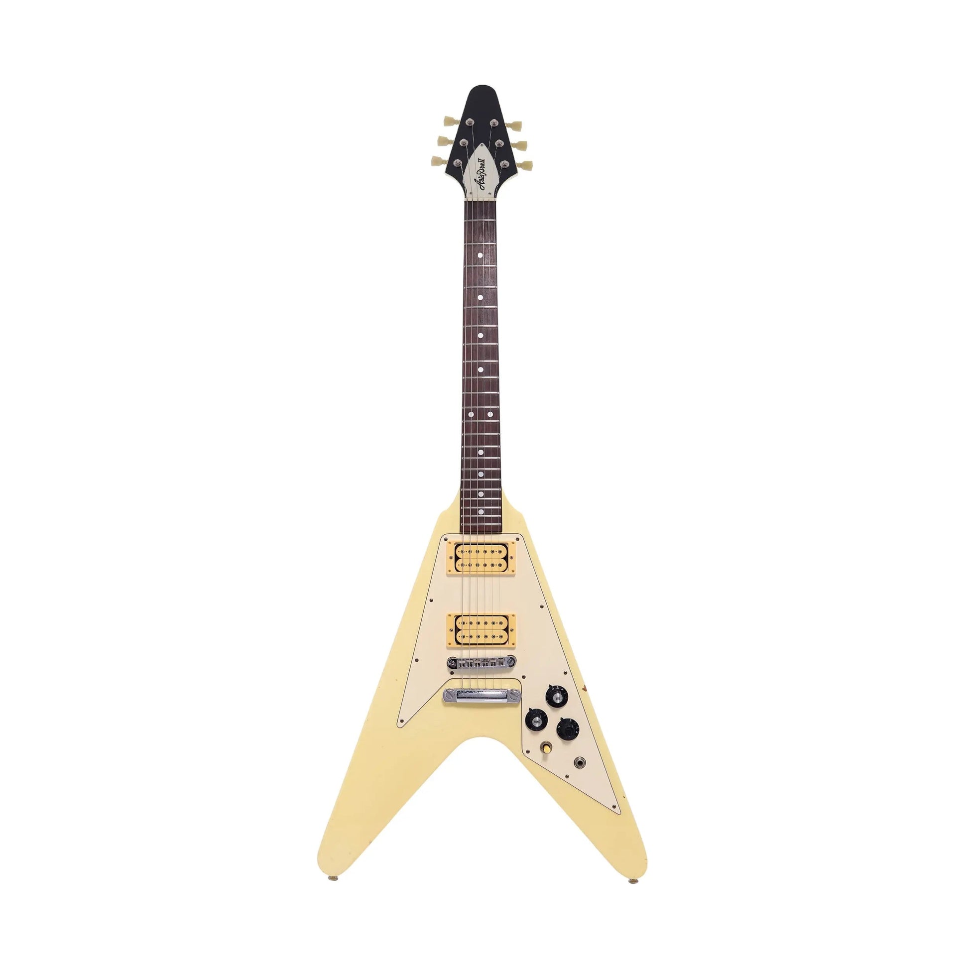 Made in Japan in 1980s, fantastic Aria Pro II FV-550 Flying V in Vintage White finish.