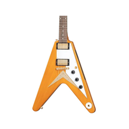 The Epiphone 1958 Korina Flying V Aged Natural (White Pickguard) is a stunning recreation of one of the most legendary guitars ever made. Developed in collaboration with the Gibson™ Custom Shop, this model captures the timeless tone, striking design, and smooth playability of the original 1958 Flying V now made accessible to modern players.