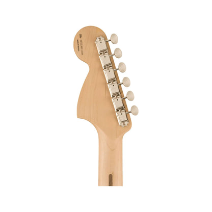 The Tom DeLonge Stratocaster boasts a Seymour Duncan® Invader™ humbucker for immense output and turbo-charged tone that's perfect for chunky power chords and crunchy riffs. But it's not all about power - the streamlined control setup consisting of a single master volume combined with a treble bleed circuit preserves the guitar's natural high-end, ensuring sparkly cleans and chime-y edge-of-breakup tones. The comfy modern "C" neck features medium jumbo frets on a 9.5" radius rosewood fingerboard for a modern feel with superior playability. Other highlights include vintage-style tuners and hardtail Stratocaster bridge with block saddles for classic looks, superior intonation and enhanced tuning stability. A custom crafted Tom DeLonge neck plate is decorated with DeLonge's original artwork.