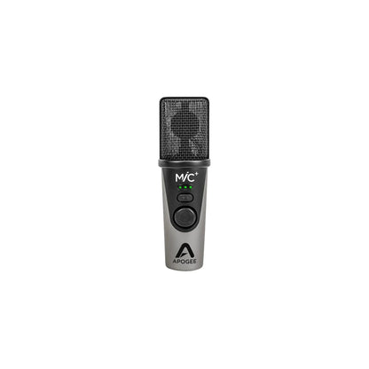 The Apogee MiC Plus USB Microphone gives you up to 24-bit/96kHz bit depth/sample rate, so your recordings will always sound full and clean. There are front-side controls for input level and monitor signal blending, and the MiC Plus also has a built-in threaded camera mount. The headphone output and USB port are thoughtfully positioned — out of your way, on the bottom of the mic. The MiC Plus comes with a mini tripod, mic stand adapter, USB micro-B to Lightning cable, USB micro-B to USB-A adapter cable, and a USB micro-B to USB-C adapter cable.