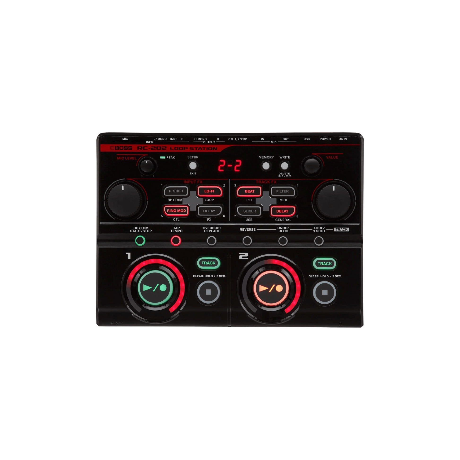 Perfect for club performers, electronic musicians, and beatboxers, the RC-202 packs powerful BOSS looping and multi-effects in an amazingly compact tabletop unit. Based on the popular RC-505 Loop Station, the two-track RC-202 offers the distinctive look and fingertip interface style of its big brother, plus a host of new features. Four Input FX and four Track FX are available at once, and loops can be saved to memories in real time for seamless creative expression while performing. Expanded foot control and MIDI capabilities are also included, ideal for looping musicians who have their hands occupied with guitar, keyboards, and other instruments.
