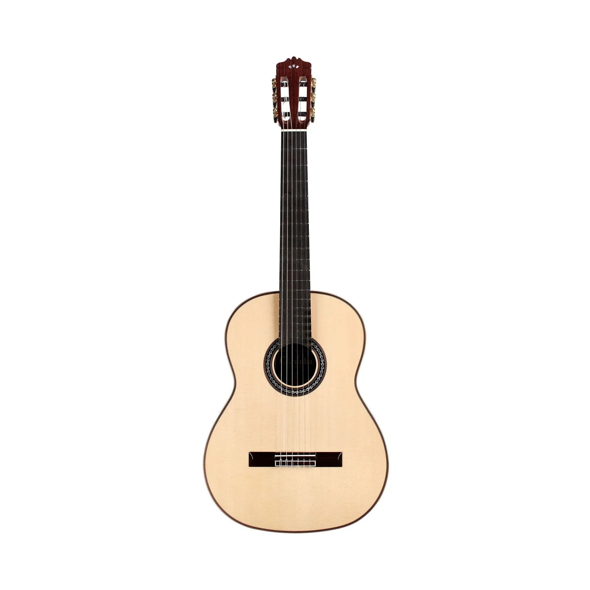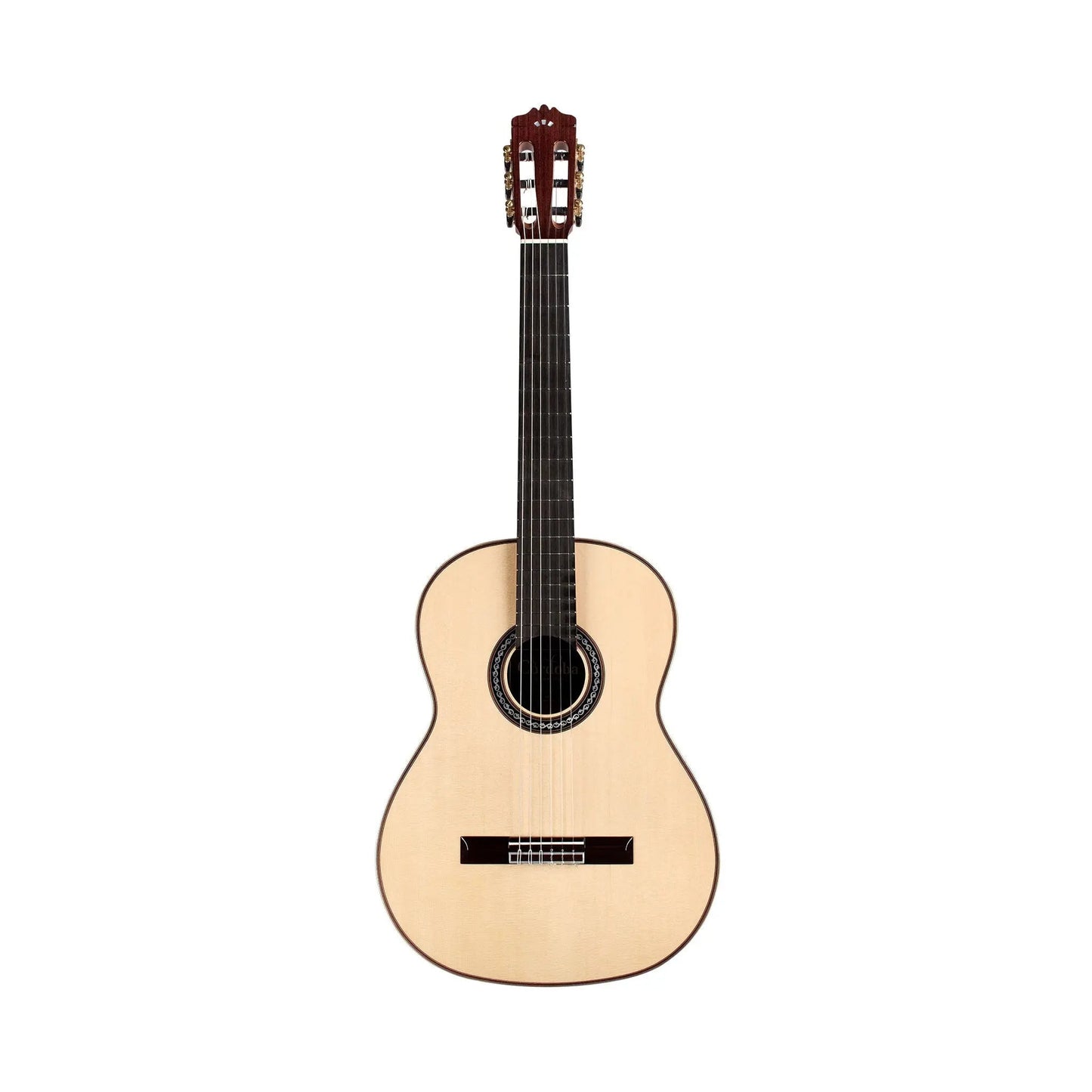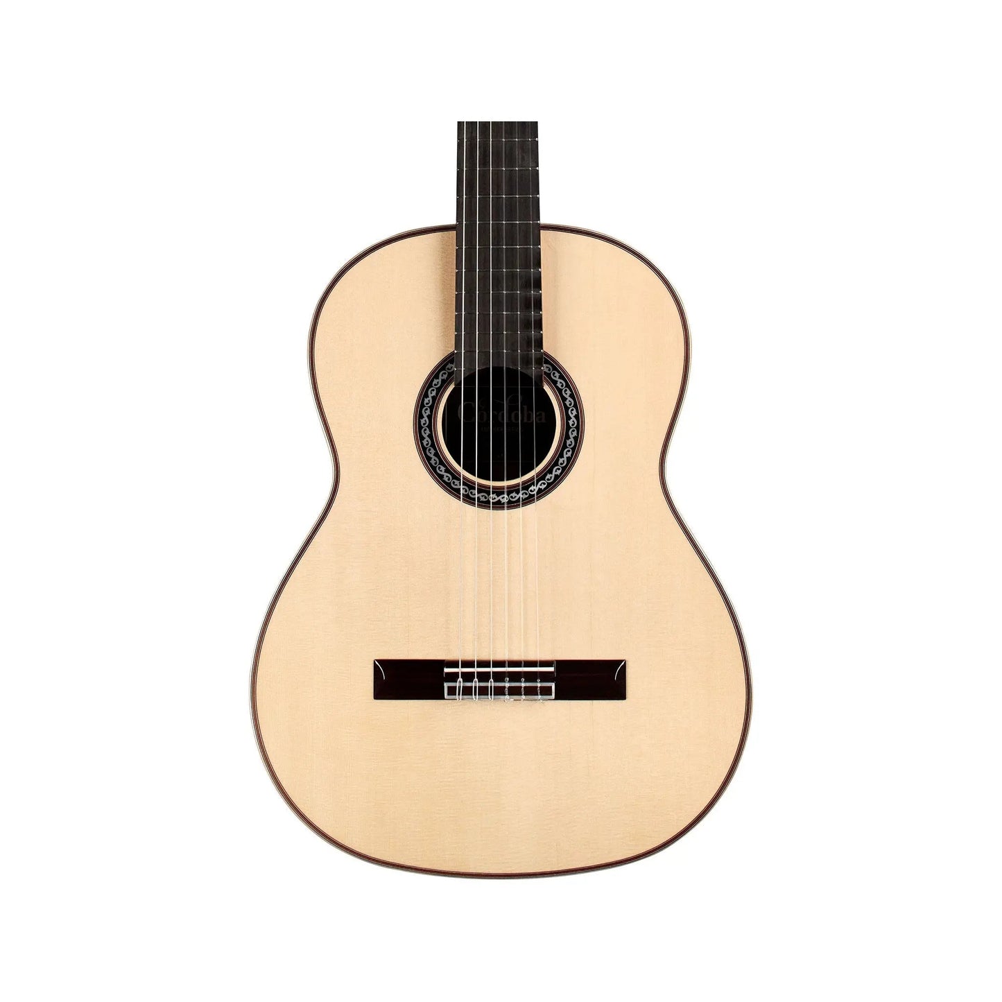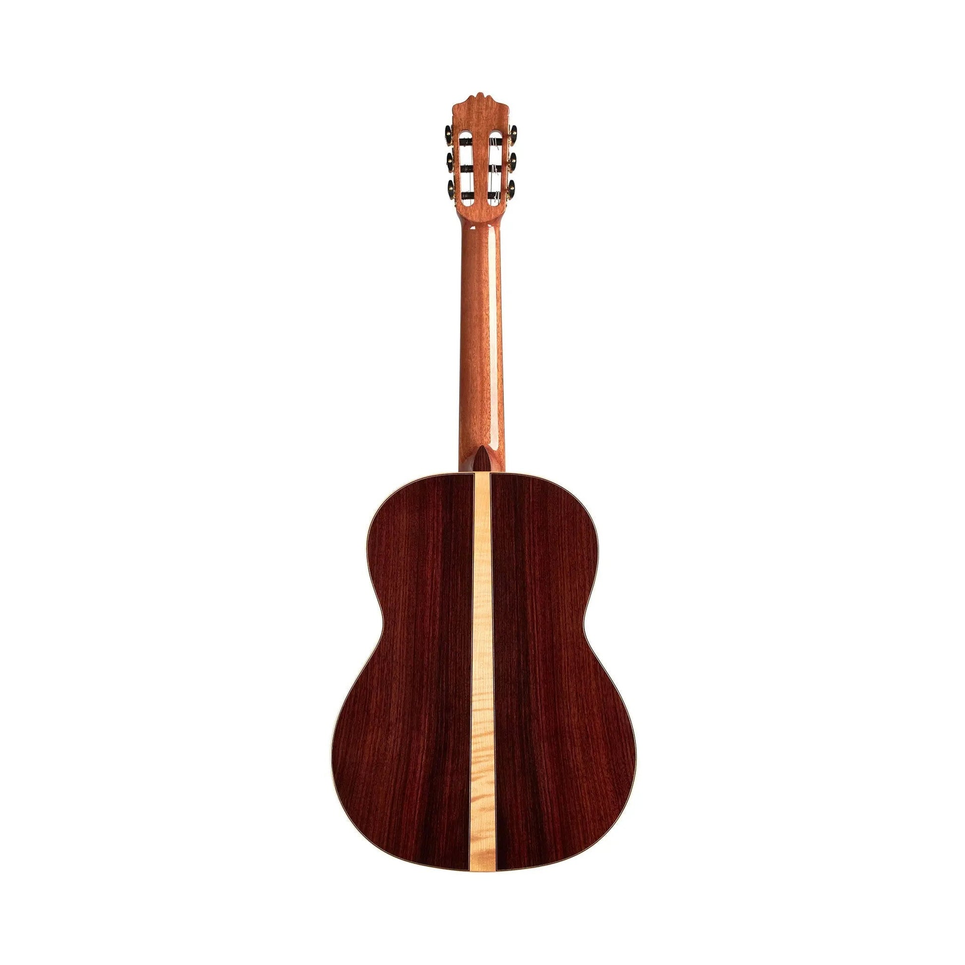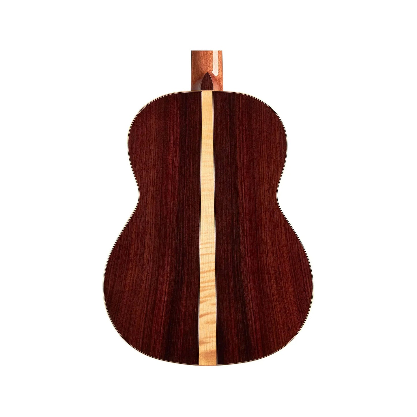The all-solid C12 is one of our most high-end and modern guitars. Available with either a solid Canadian cedar or European spruce top with Indian rosewood back and sides, the C12's lattice bracing and raised fingerboard are elements that make this model truly stand out from the rest. The delicately braced top provides rich tones with a lively presence and the raised fingerboard makes accessing upper frets a breeze. The C12 is a treasure to last a lifetime with stunning decorative elements such as its flamed maple center wedge on the back, matching maple binding, and hand-inlaid 1920s-inspired pearloid rosette. Comes inside a hardshell Córdoba humidified archtop case.