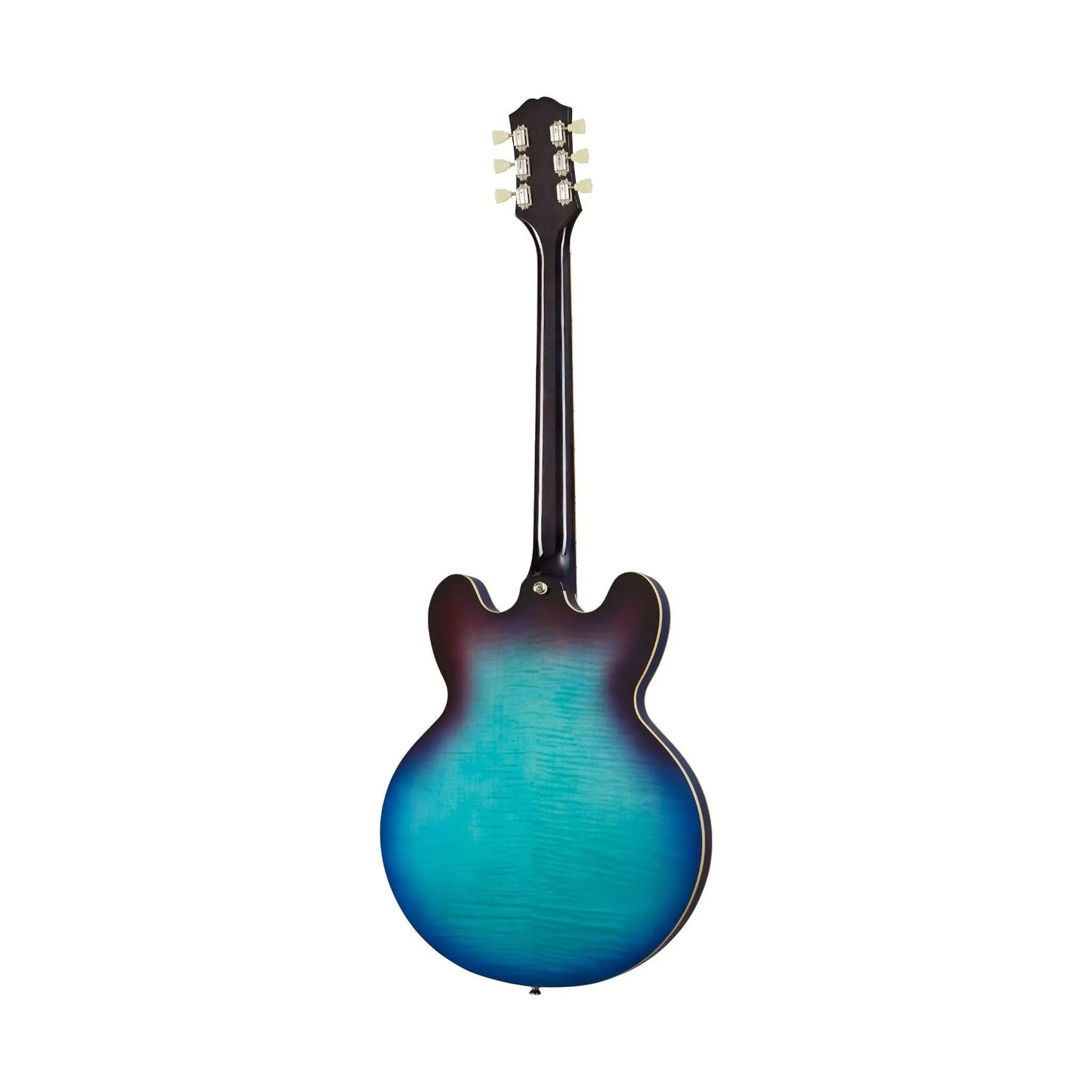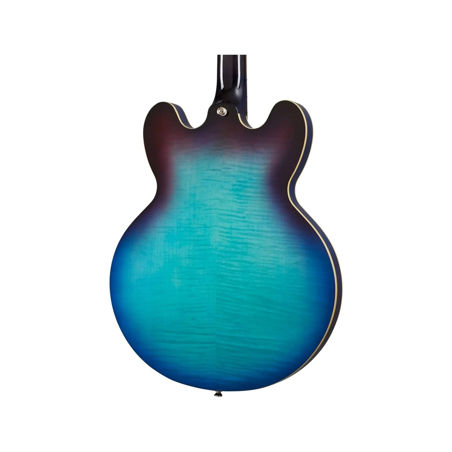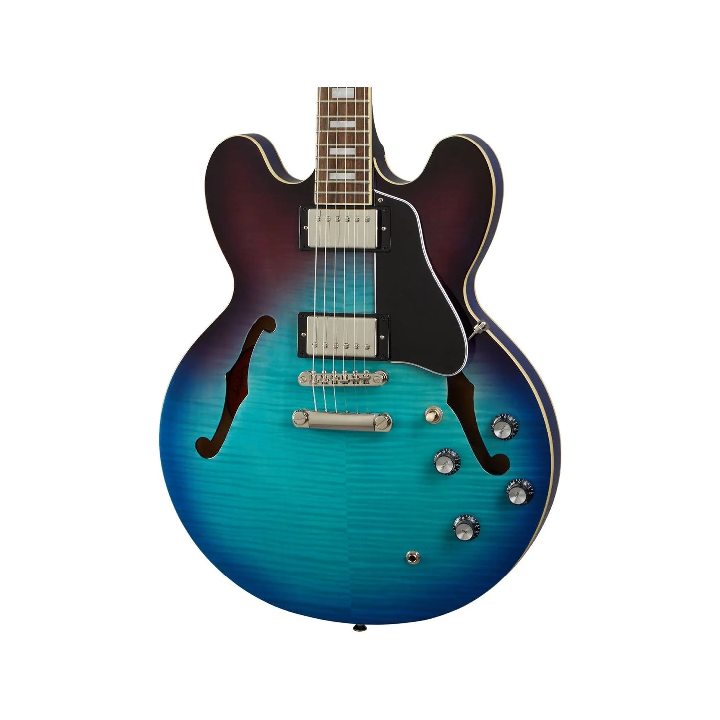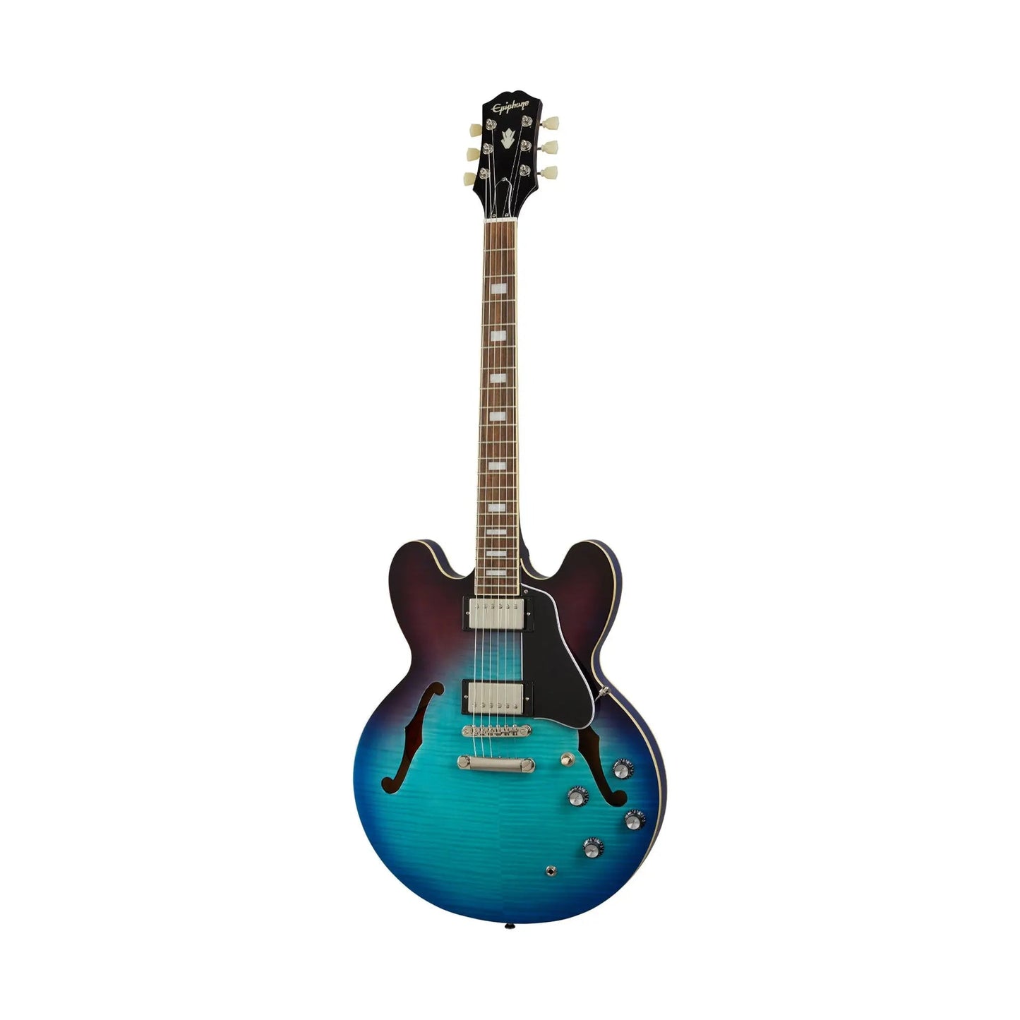 The Epiphone ES-335 Figured Blueberry Burst is a tribute to Gibson’s iconic semi-hollowbody design, offering both stunning visual flair and warm, resonant tone. With a layered maple body and AAA flamed maple veneer top, it features a solid center block for enhanced sustain and feedback control. Perfect for stage or studio, the ES-335 Figured delivers vintage-inspired versatility with modern playability.