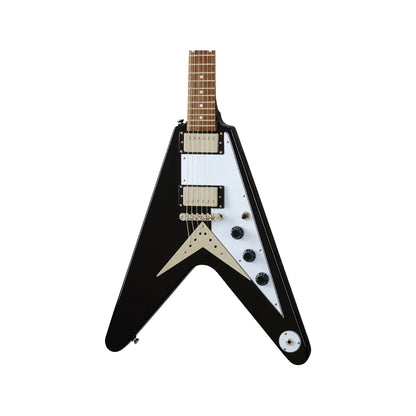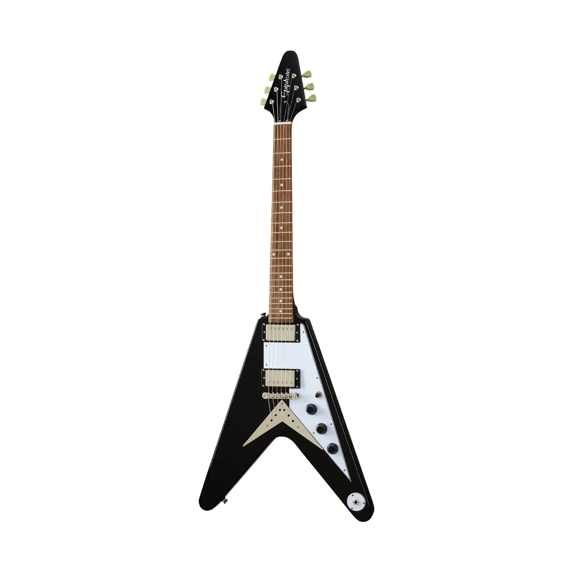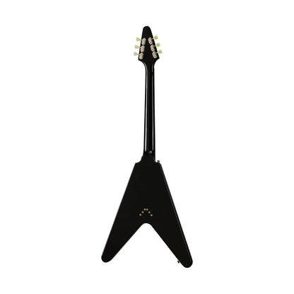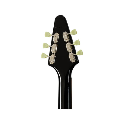The Epiphone Flying V from the new Inspired by Gibson™ Collection recreates the ultra-rare 1958 classic with a pair of Epiphone ProBucker™ humbuckers™ for that vintage tone, string-thru tailpiece, Epiphone Vintage Deluxe tuners, and the vintage ornament Epiphone logo on the headstock. This Epiphone Inspired by Gibson Original model also has a rolled neck for a comfortable feel, Graph Tech® NuBone™ nut, era-appropriate wiring, and CTS® pots.