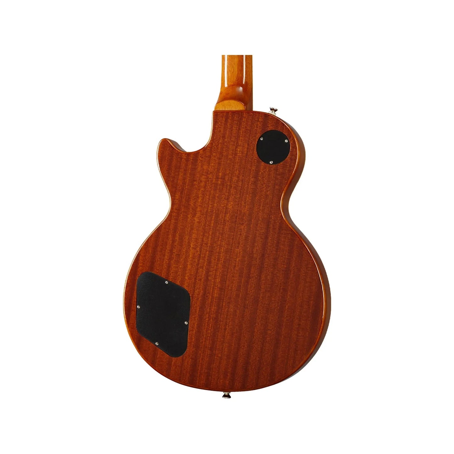Epiphone’s new Inspired by Gibson™ Collection proudly presents the Les Paul™ Standard 50s! This guitar lovingly recreates the feel and tone of the 1950s era Les Pauls. Epiphone’s long friendship with Mr. Les Paul began in 1940 when Les built one of the world’s first solidbody electric guitars while working nights at the original Epiphone factory in Manhattan. Les’ first solidbody guitar, nicknamed “the Log”, would go on to inspire the Les Paul Standard, which many consider the greatest electric guitar ever made. The guitar is crafted with a mahogany body, maple cap (AAA veneer on figured tops), bound 50s shaped mahogany neck with long neck tenon, Indian laurel fingerboard with classic trapezoid inlays, Epiphone's new Vintage Deluxe tuners, a pair of critically acclaimed Epiphone ProBucker™ humbuckers™, and gold Top Hat knobs with dial pointers. Available in Metallic Gold, Vintage Sunburst, and Heritage Cherry Sunburst full-gloss finishes. This Epiphone Inspired by Gibson Original model also has the Kalamazoo headstock, rolled neck for a comfortable feel, Graph Tech® NuBone® nut, era-appropriate wiring, and CTS® pots.