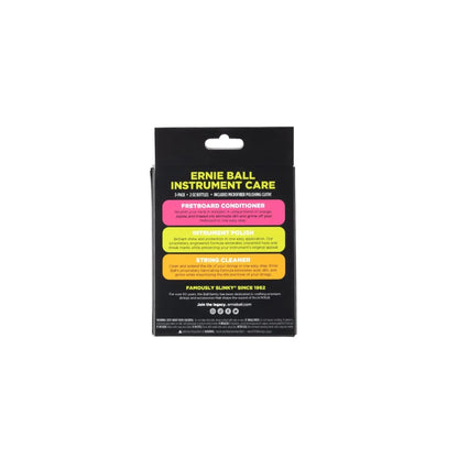 The Ernie Ball Instrument Care Kit has all the essential components for cleaning, maintaining, and enhancing the performance of your instrument. It includes a string cleaner that extends the lifespan of your strings and safeguards them from moisture and corrosion. The instrument polish removes grime, haze, and fingerprints, while the fretboard conditioner cleans and moisturizes your fretboard. The kit also includes a microfiber polishing cloth for effortless, no-mar application, ensuring your instrument always looks and sounds its best.