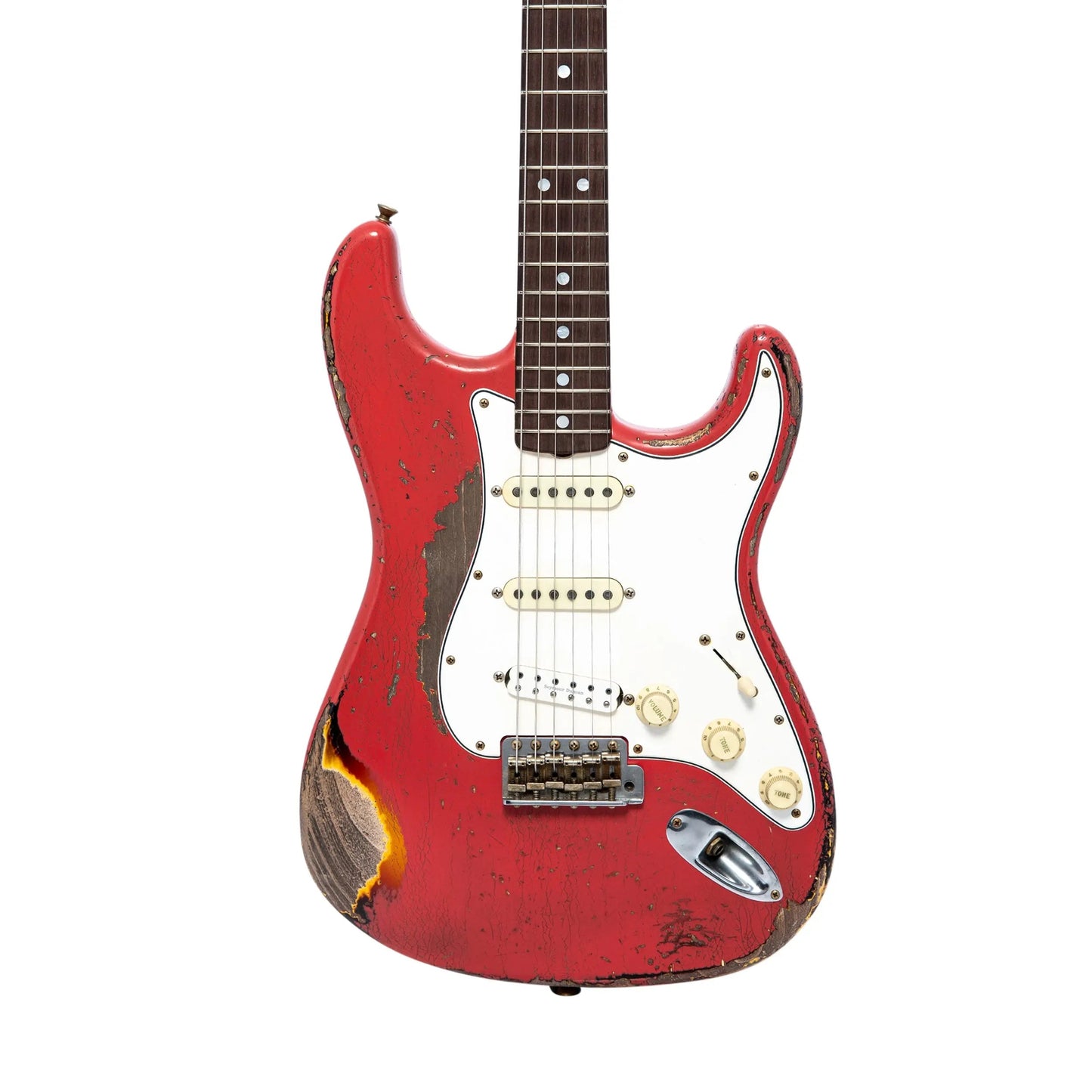 Fender Greg Fessler Limited Edition 1965 Masterbuilt Stratocaster Heavy Relic Fiesta Red over 3 Colour Sunburst