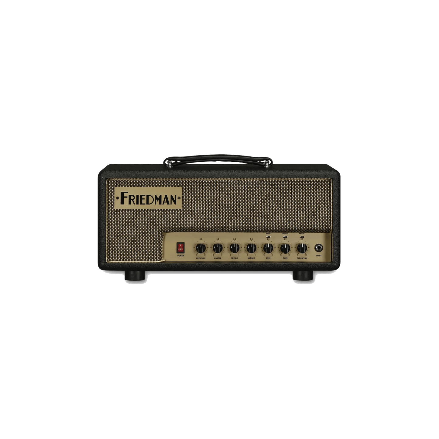 The Runt-20 is a 20-watt all tube head that delivers Friedman's legendary tone and versatility in a compact 2-channel amp. The Runt-20’s power section is driven by two EL-84s, with three 12AX7s in the preamp. The "simple" clean channel features a volume knob and 3-position bright switch that delivers anything from pristine cleans to a slightly broken-up tone, which is great for blues and country. The heart and soul of the Runt-20 is the overdrive channel, which takes you from classic rock to all-out assault. Use the Boost switch and Gain knob to dial in the perfect amount of overdrive. A global presence control shapes the high-frequency response of the Runts power section.
