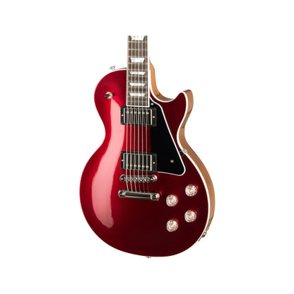 The new Gibson Les Paul™ Modern incorporates many contemporary updates that players have embraced, such as a lighter-weight body and innovative SlimTaper™ neck with an asymmetrical profile. The Modern fingerboard is crafted with genuine ebony and a compound radius for lower and cleaner action. The neck/body joint features the new Modern Contoured Heel for effortless access to the highest frets as well as maximum sustain and stability. Hardware upgrades include Grover® locking Rotomatic® tuners, clear Top Hat knobs, and Burstbucker Pro™ and Burstbucker Pro + pickups. The control assembly features 4 push-pull pots to switch between the Gibson™ humbucker™ and the single coil P-90 sounds, both of which have defined so many genres of music across multiple generations since we invented them, phase switching and pure bypass for functional and versatile sonic variety. The new Gibson Les Paul Modern is here to shape sound for future generations.