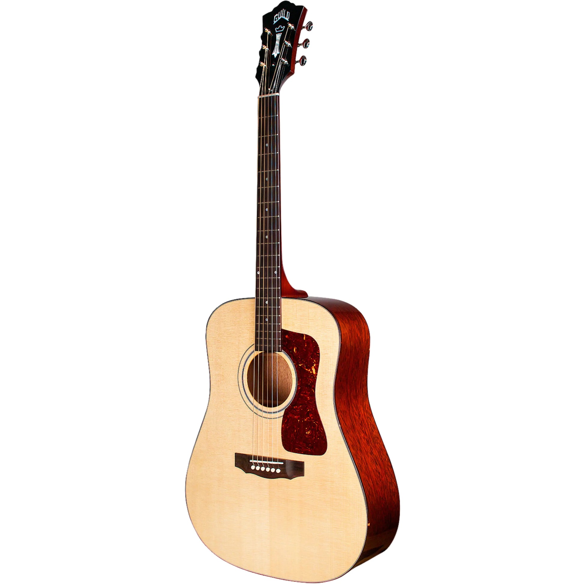 The Guild D-40 Traditional Natural is a premium dreadnought acoustic guitar combining classic design, high-quality tonewoods, and meticulous craftsmanship. Its solid Sitka spruce top and solid African mahogany back and sides, enhanced by scalloped Adirondack bracing, deliver exceptional power, balance, and tonal nuance.