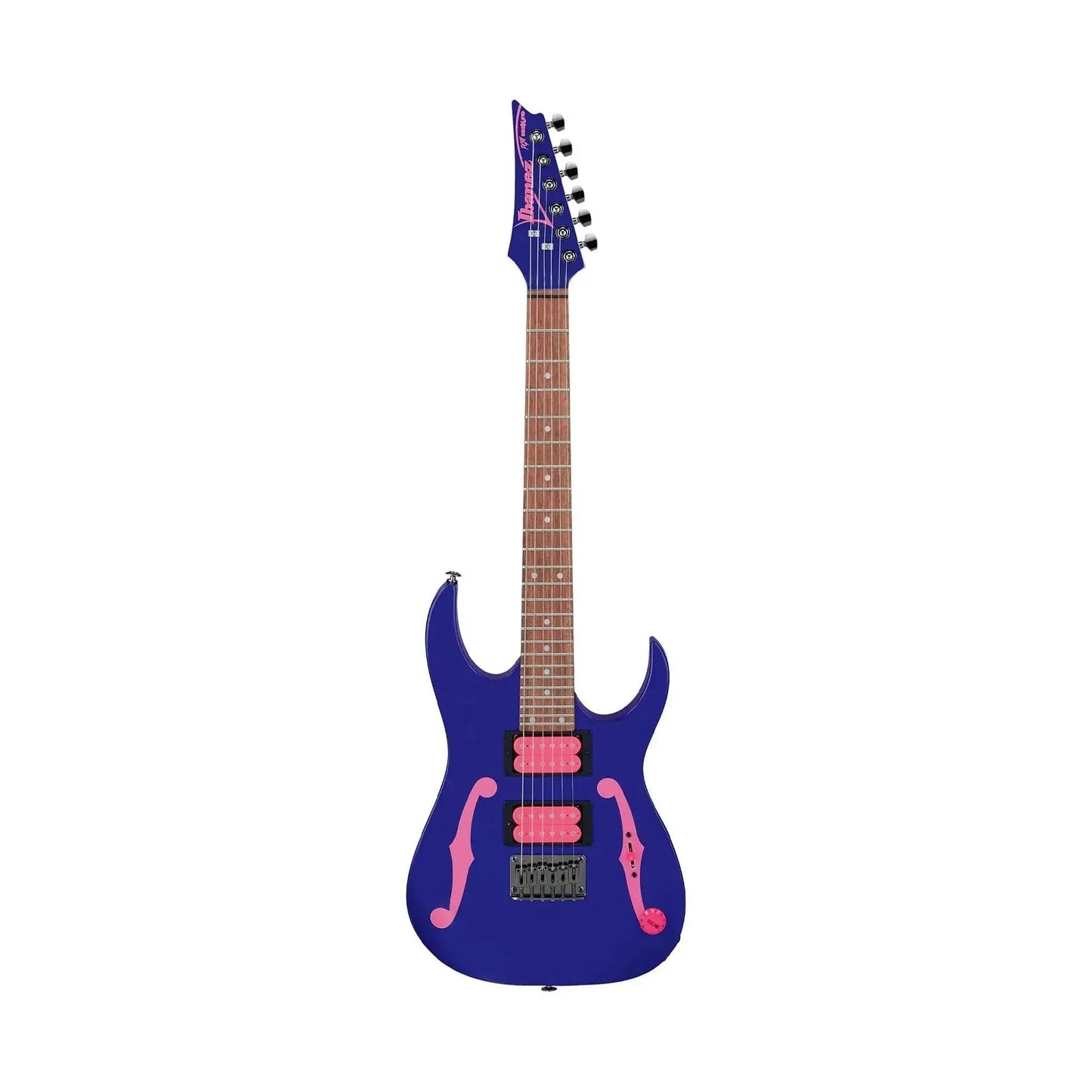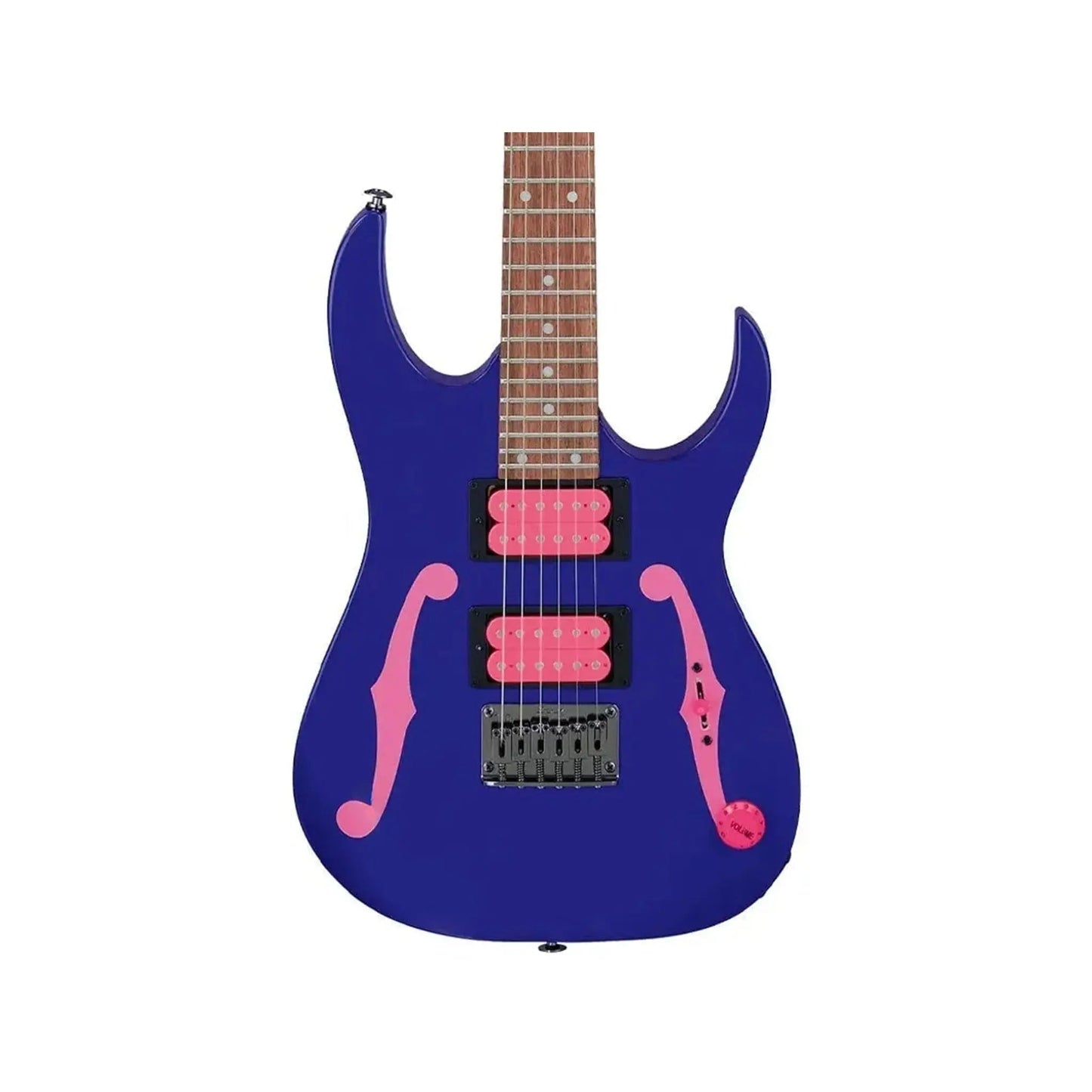 When you play the Ibanez Paul Gilbert Signature PGMM11 for the first time, you'll marvel at its feather-like weight and well-balanced basswood body. This short-scale electric guitar's condensed fret spacing feels like it's tailor-made for younger players with small fingers. Plus, the softened string tension is forgiving on the fingers, making longer practice sessions more tolerable. That's not all! The PGMM11's Infinity R humbuckers are thick and punchy when you need them to be and clean up well when you dial back the volume. Similar to Paul's other Ibanez models, the PGMM11 features a hardtail bridge for excellent tuning stability. Complete with black hardware and his iconic painted F-holes, the Ibanez Paul Gilbert Signature PGMM11 packs plentiful value into a petite package.