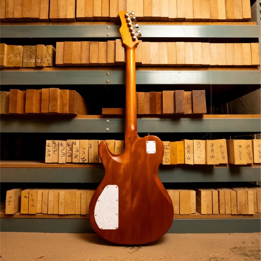The James Tyler JTG M1 (Mongoose) combines the signature look, feel, and tone of James Tyler guitars with a more accessible package. Part of the new JTG line, this set-neck model features premium construction, JTG custom-wound pickups, and an expertly finished Maple top over Okoume body, offering both vintage character and modern playability.