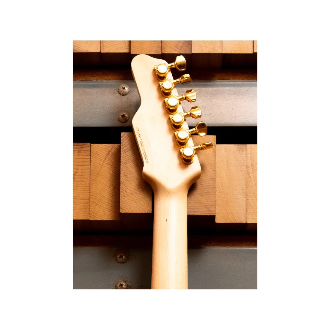 - Slanted HSS pickup configuration with JTG custom-wound pickups
