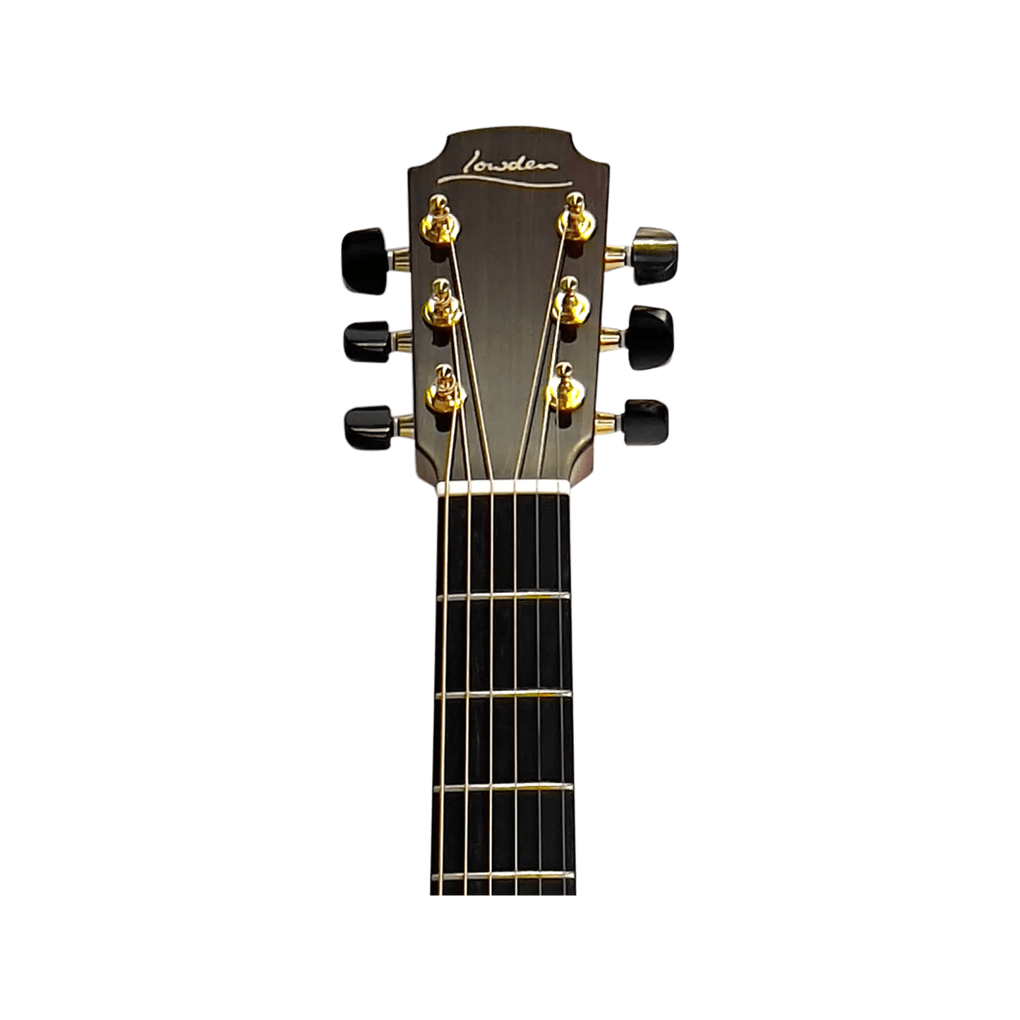 - Neck Details: Rosewood headstock overlay with pearloid 'Lowden' inlay.