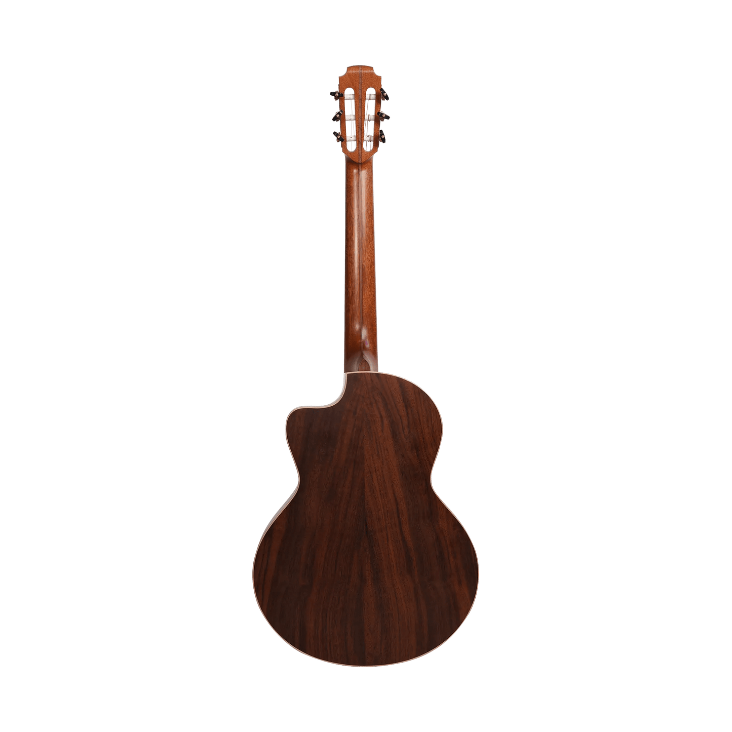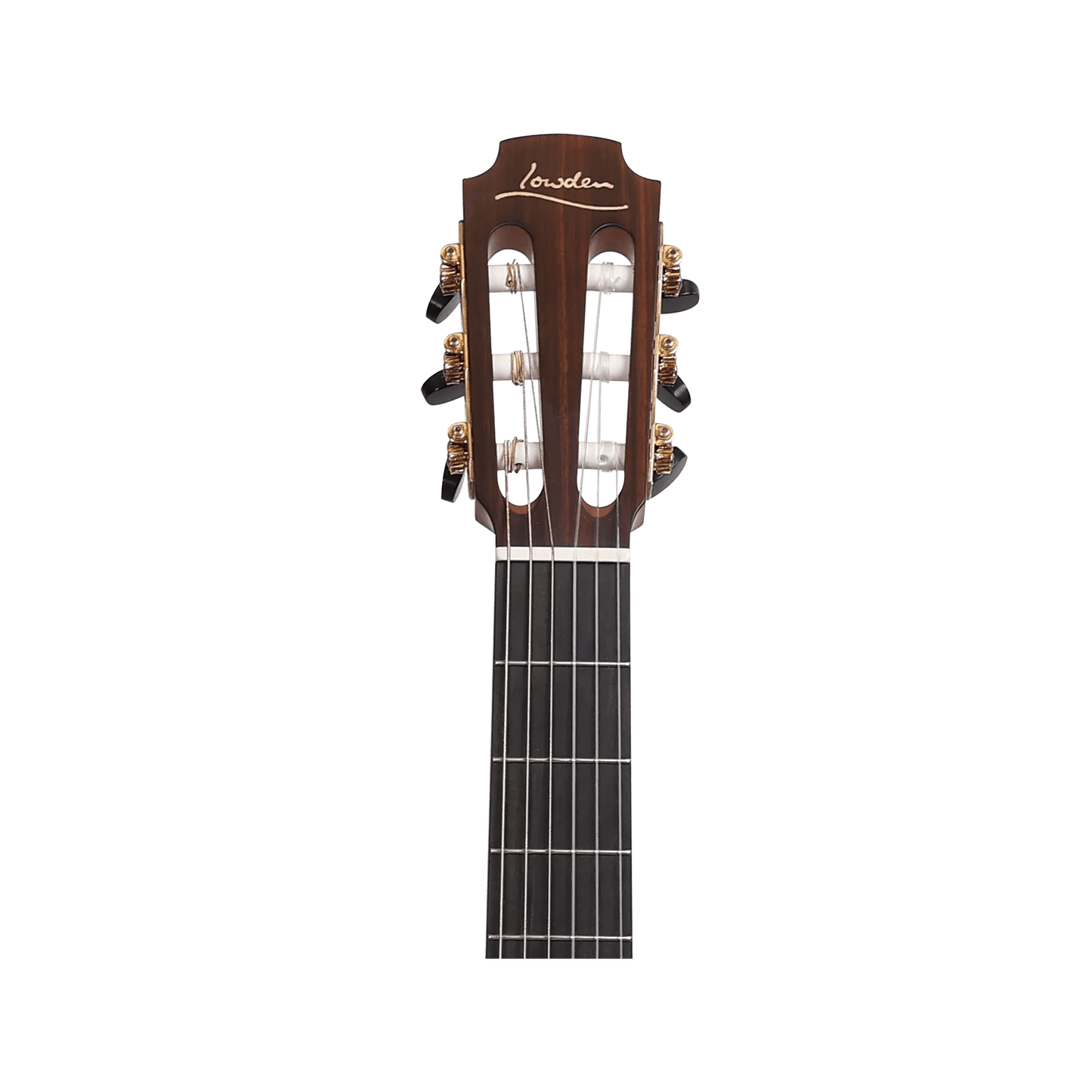 The Jazz 23 is designed so that it would feel very comfortable for classical and steel string players alike. The neck has enough width to facilitate the nylon strings but at the same time the cambered fingerboard allows for a wide variety of playing styles. The Lowden Jazz is fitted with an board pickup as standard. The soundbox is voiced for a really great acoustic response, and at the same time stiff enough to prevent the whole guitar from overreacting when played loud through a sound system.