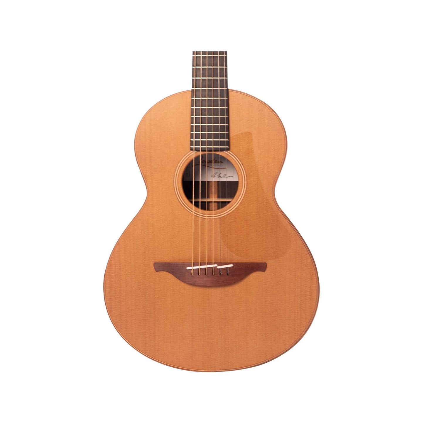 The WL-25 features a Rosewood back and sides and Cedar top, a classic tonewood combination that has been used on acoustic guitars for generations. It perfectly blends projection and dynamics with a crisp high end clarity and a warm midrange. The smaller size of the Wee Lowden makes it very comfortable to play, and an excellent option as a travel guitar. It has a tighter and more focused sound than a larger bodied guitar, allowing for a more precise sound when fingerpicking or playing arpeggios, and a less bass when playing chords, making it clearer and more expressive.