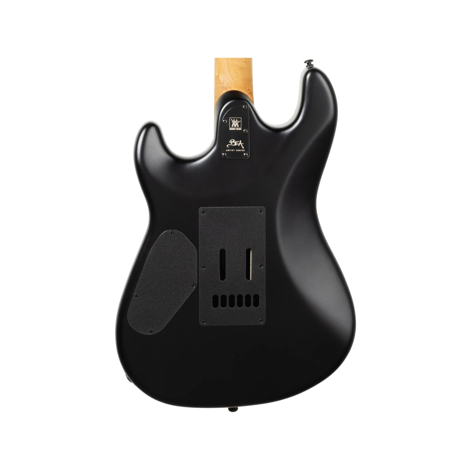 The Rabea Massaad Artist Series Sabre guitar is our first collaboration with the multi-talented guitarist, composer, and producer Rabea Massaad. The Massaad Artist Series Sabre incorporates several custom design elements integral to Rabea's unique playing style and technique. These specifications include a custom thicker tapered neck carve, a recessed carve on the front and back lower horn, enhancing comfortability and higher fret accessibility, and glow-in-the-dark side dot markers. The guitar is also equipped with a custom compact Ernie Ball Music Man tremolo, Rabea Massaad signature Bare Knuckle "Silo" humbuckers, and push-push split-coil electronics for access to single-coil tones in the 1 and 5 positions. The guitar also shares some of the same specifications as the regular Sabre model, with 22 stainless steel frets, a roasted maple neck, and an Alder body with a thick maple top.