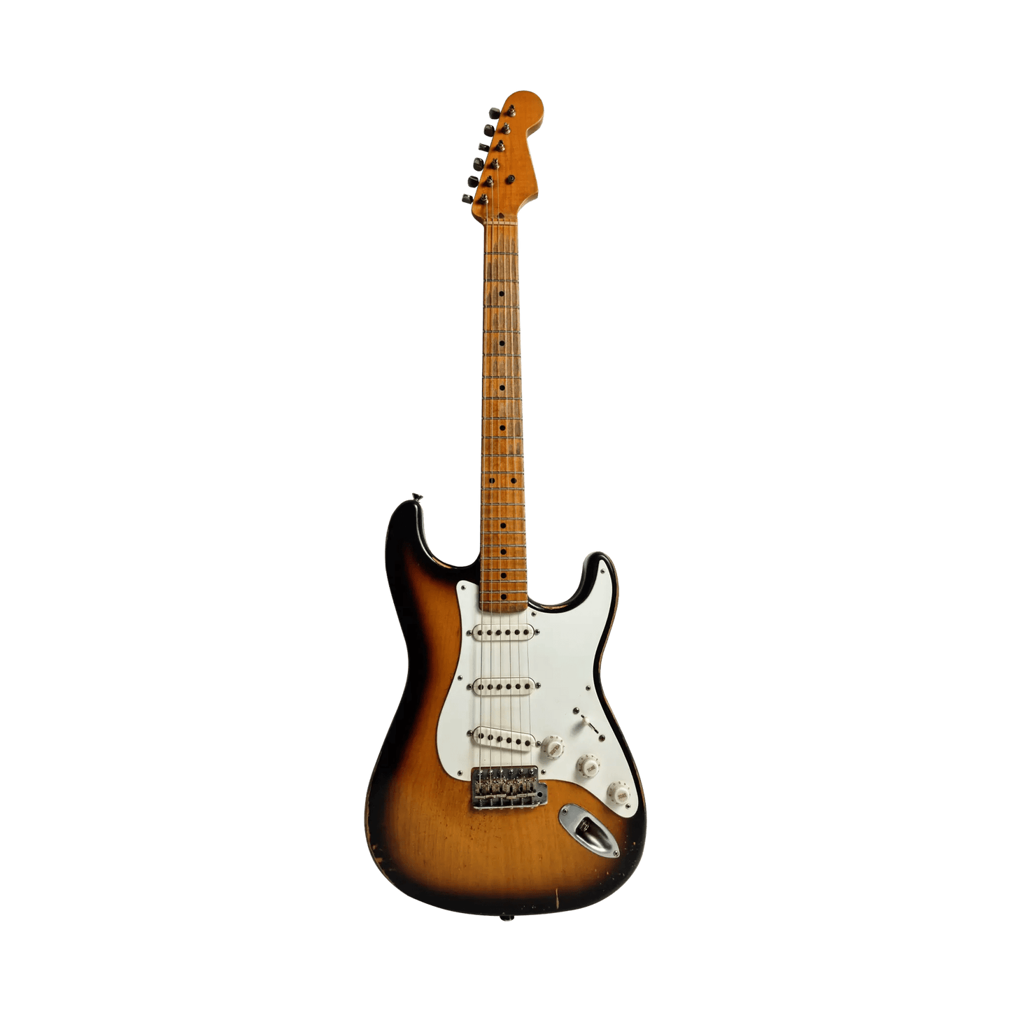 - The guitar comes with a white plastic pickguard and components have been aged to mid-50s vintage specs.
