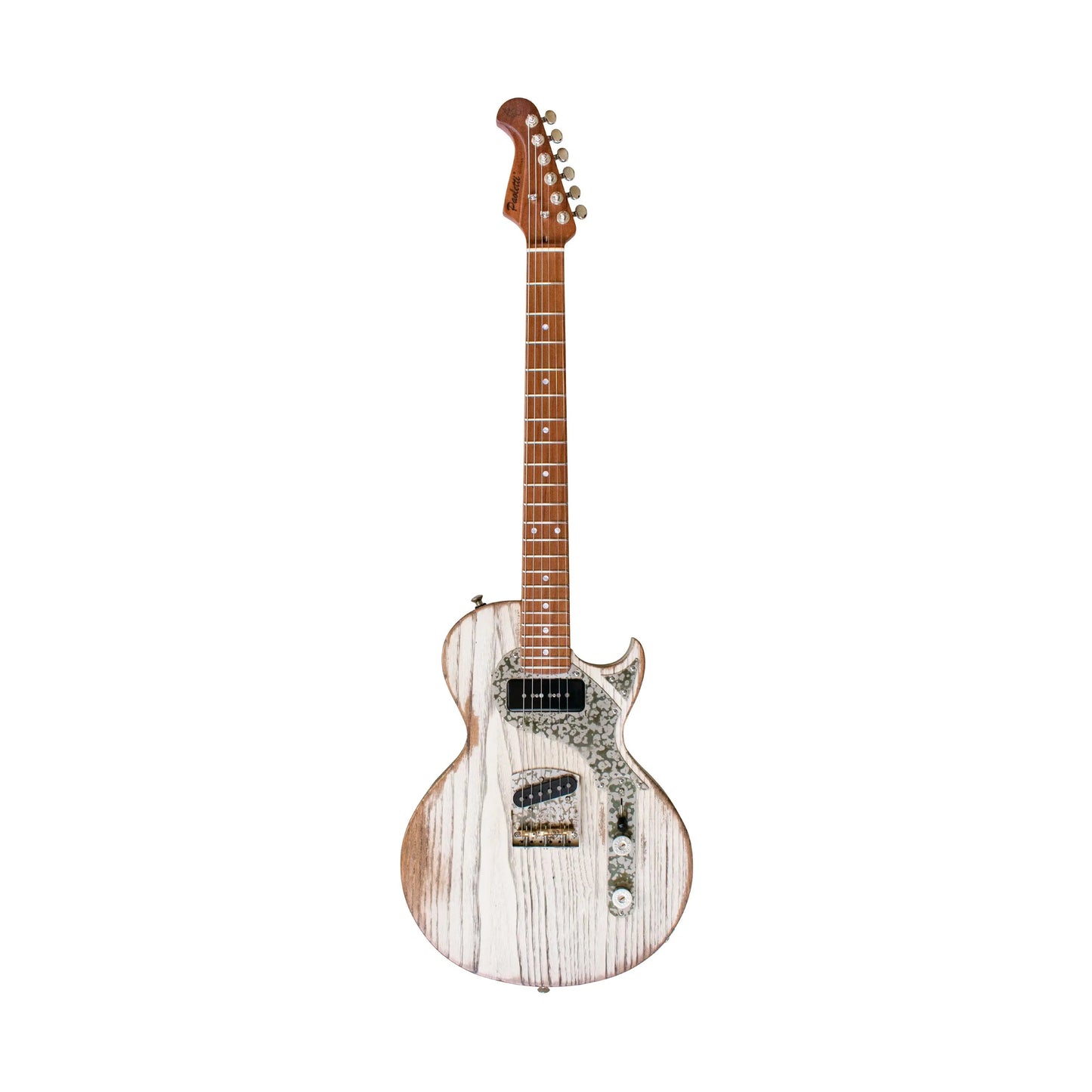 The Paoletti Seicento Loft SP90 – Richard Fortus Signature #3 is a limited-edition guitar crafted to Richard Fortus's personal specifications. Made from aged chestnut wood reclaimed from wine barrels, it delivers unique tonal characteristics, harmonic richness, and exceptional sustain. Designed for musicians seeking a distinctive, high-quality instrument, this signature model combines elegant aesthetics with professional-grade hardware and electronics.