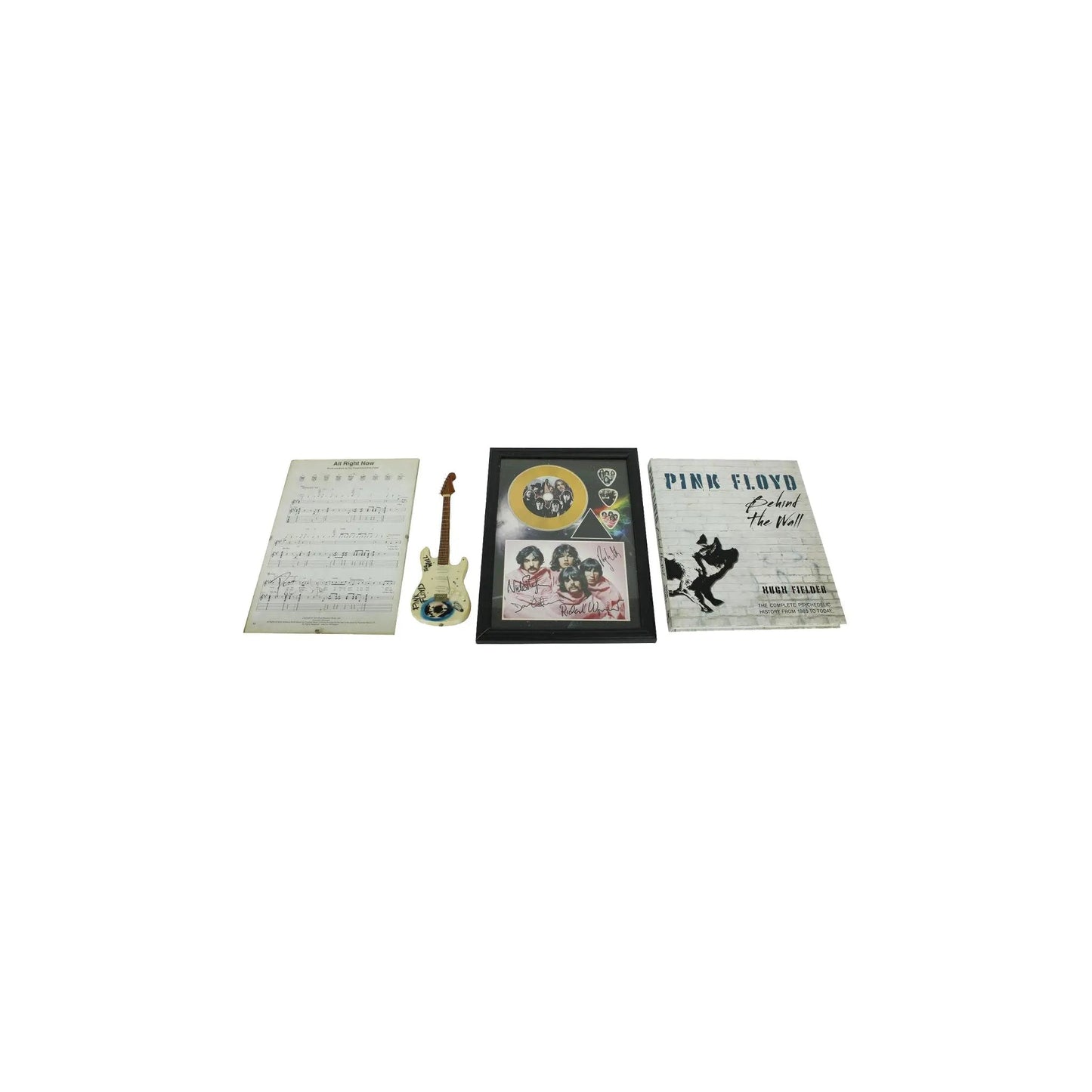 Paul Rodgers - autographed 'Alright Now' sheet music; together with Pink Floyd - Hugh Fielder 'Pink Floyd Behind the Wall' hardback book, a presentation Pink Floyd display and a miniature Pink Floyd The Wall guitar (3)